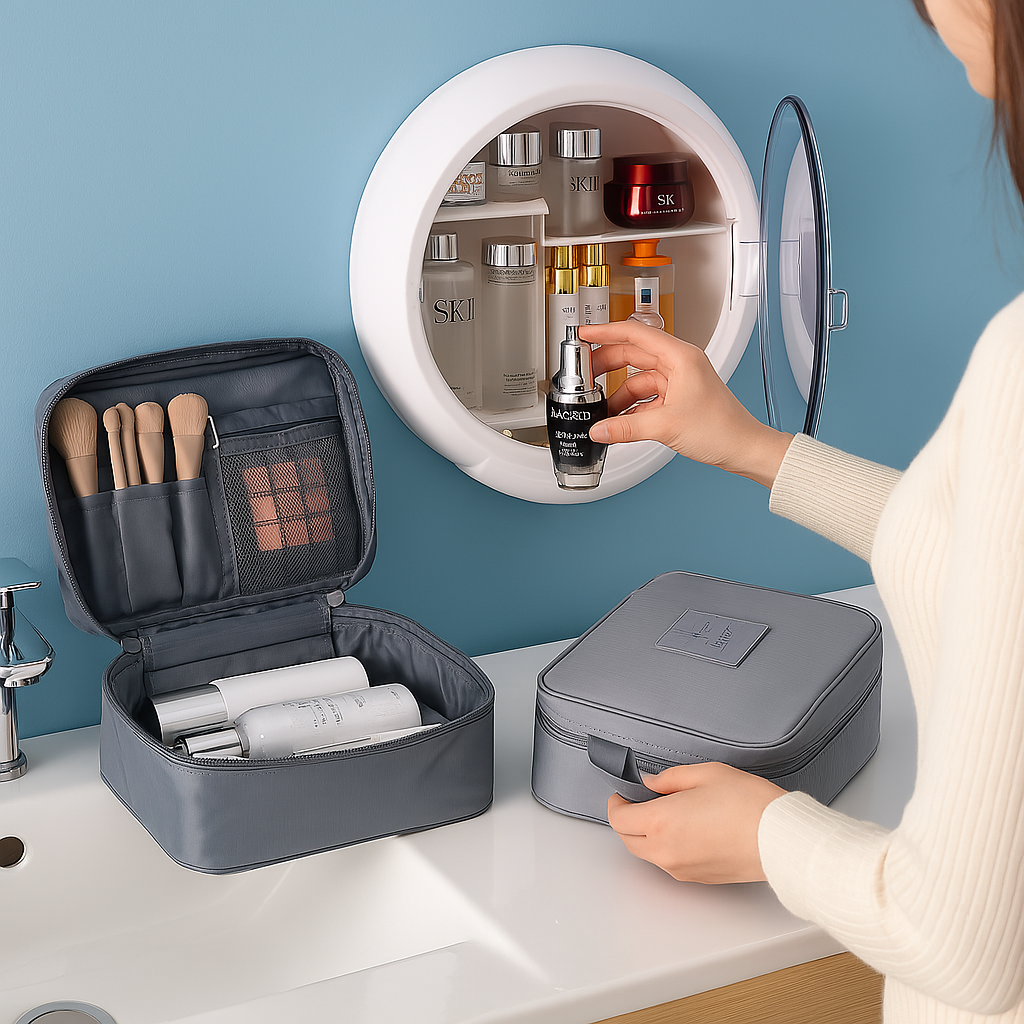 Koniec z szukaniem kremów, leków i kosmetyków po całym domu!Twoje ulubione serum zawsze pod ręką w łazience, antybiotyk natychmiast dostępny w sypialni, a żele pod prysznic stabilnie w kabinie – bez przewracania i rozlewania. Zdecyduj gdzie po powiesisz!